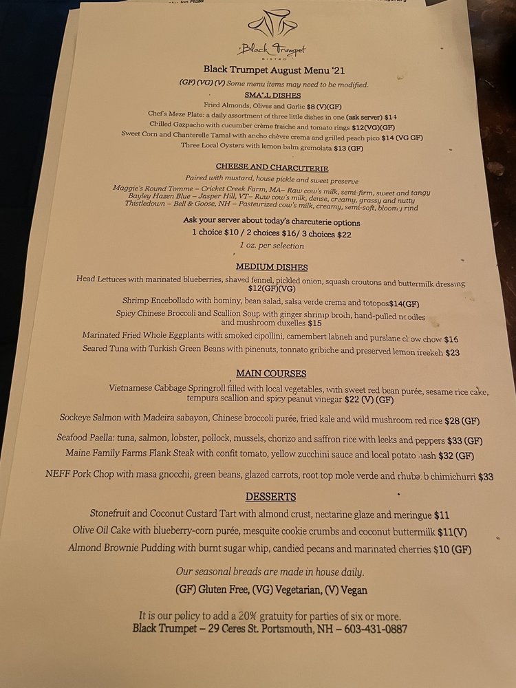 Welcome to Black Trumpet, where New American cuisine comes alive in the heart of Portsmouth. Located at 29 Ceres St, this intimate eatery emphasizes local and seasonal ingredients, crafting a menu that excites the palate.